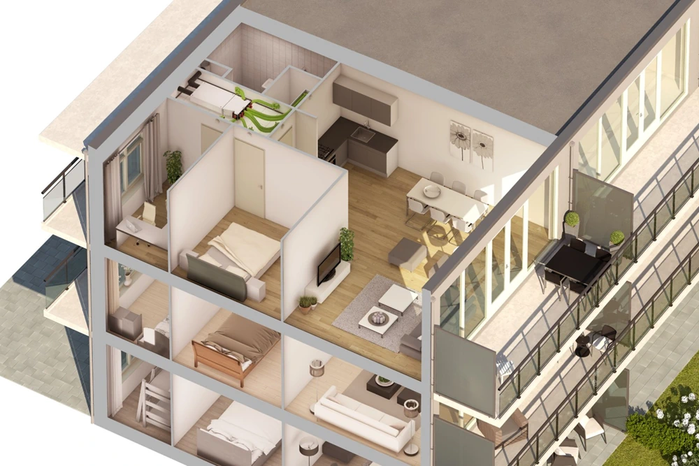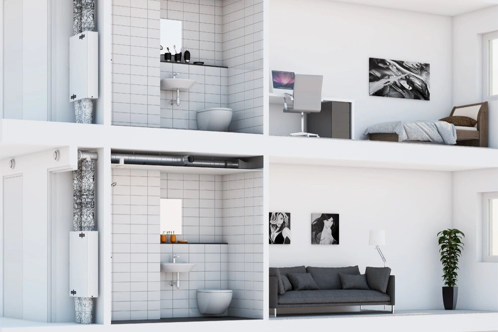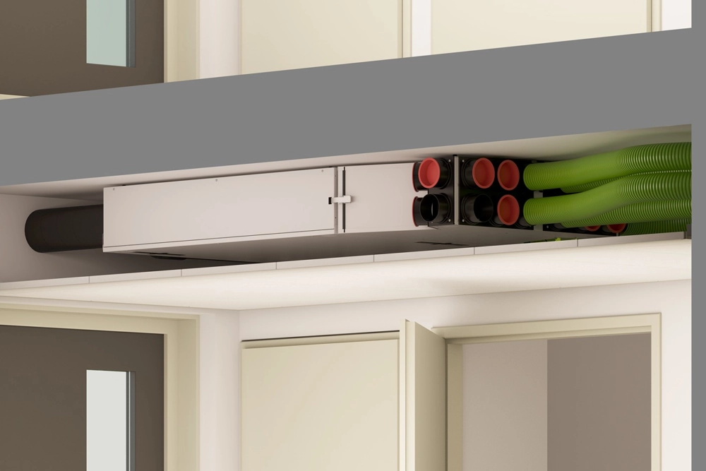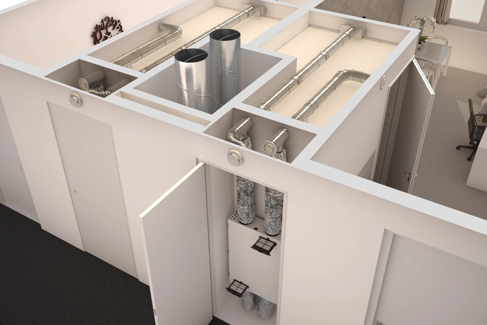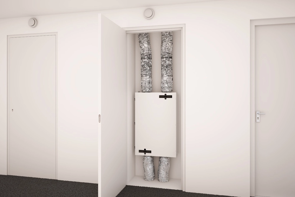 Visa Renovent Sky serija gali būti komplektuojama ne tik su standartiniu, bet ir su entalpiniu šilumokaičiu. Kadangi entalpiniame šilumokaityje nesusidaro kondensatas, nereikalingas ir kondensato nuvedimas – tai itin praktiška tiek naujuose nedideliuose, tiek renovuojamuose būstuose, kur rekuperatoriui dažniausiai numatoma vieta virš pakabinamų lubų.
